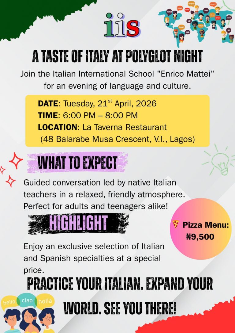 Per informazioni e iscrizioni ai corsi di lingua italiana, è possibile chiamare allo 08137575683 or 08062287908 o inviare una mail a italian.fami.nigeria@gmail.com