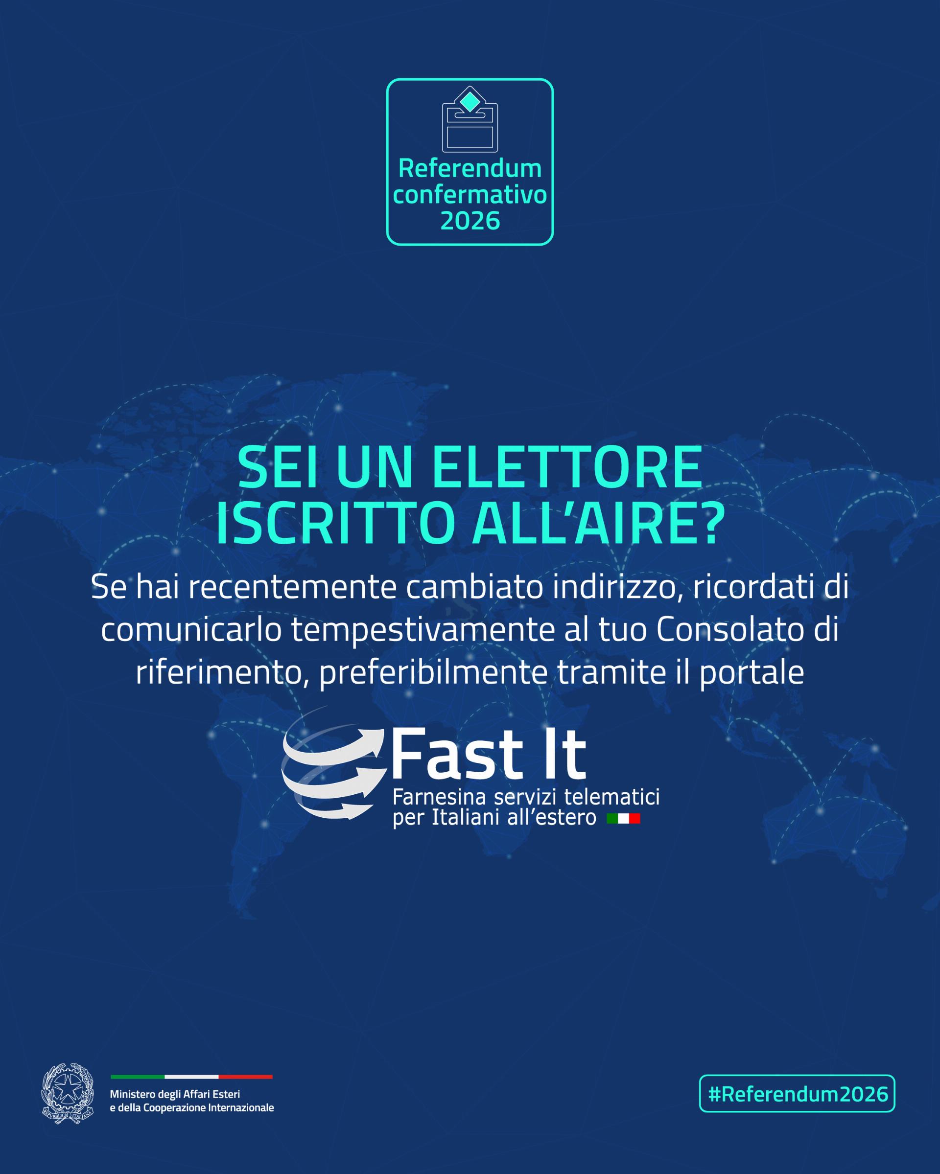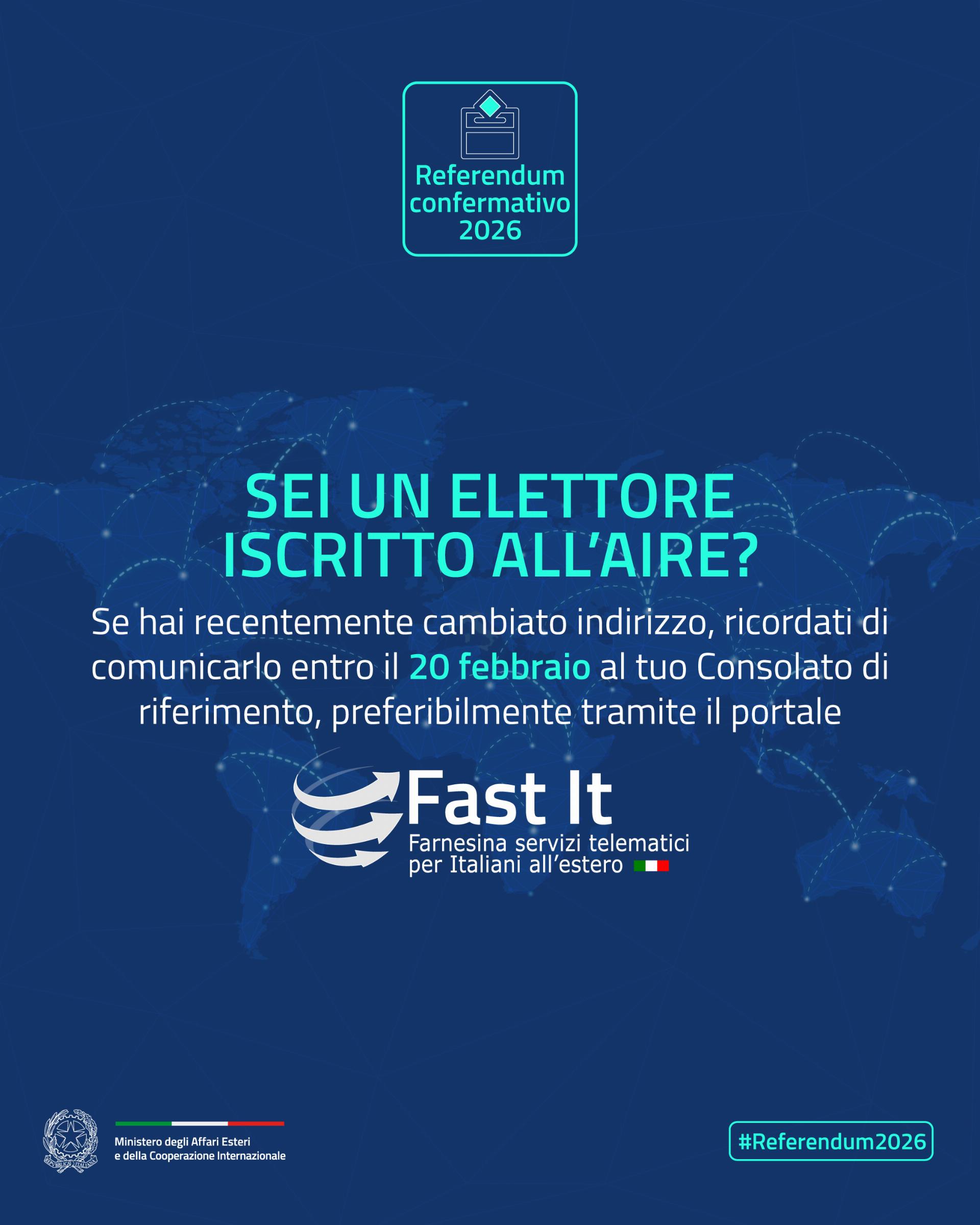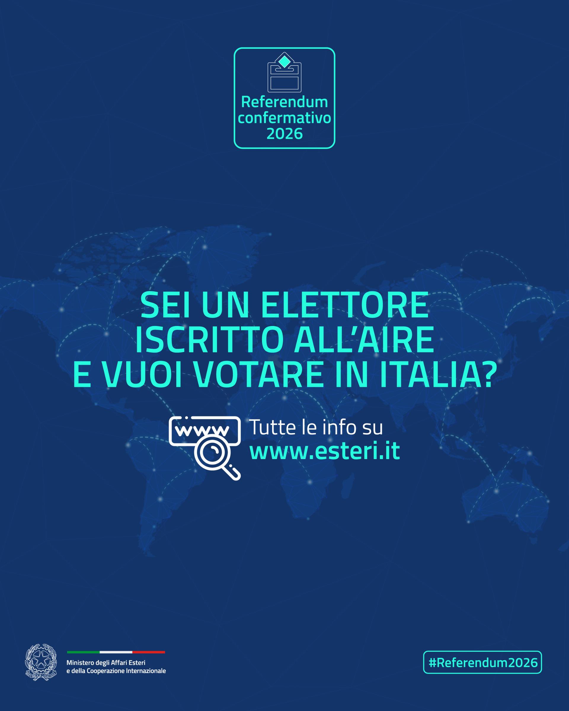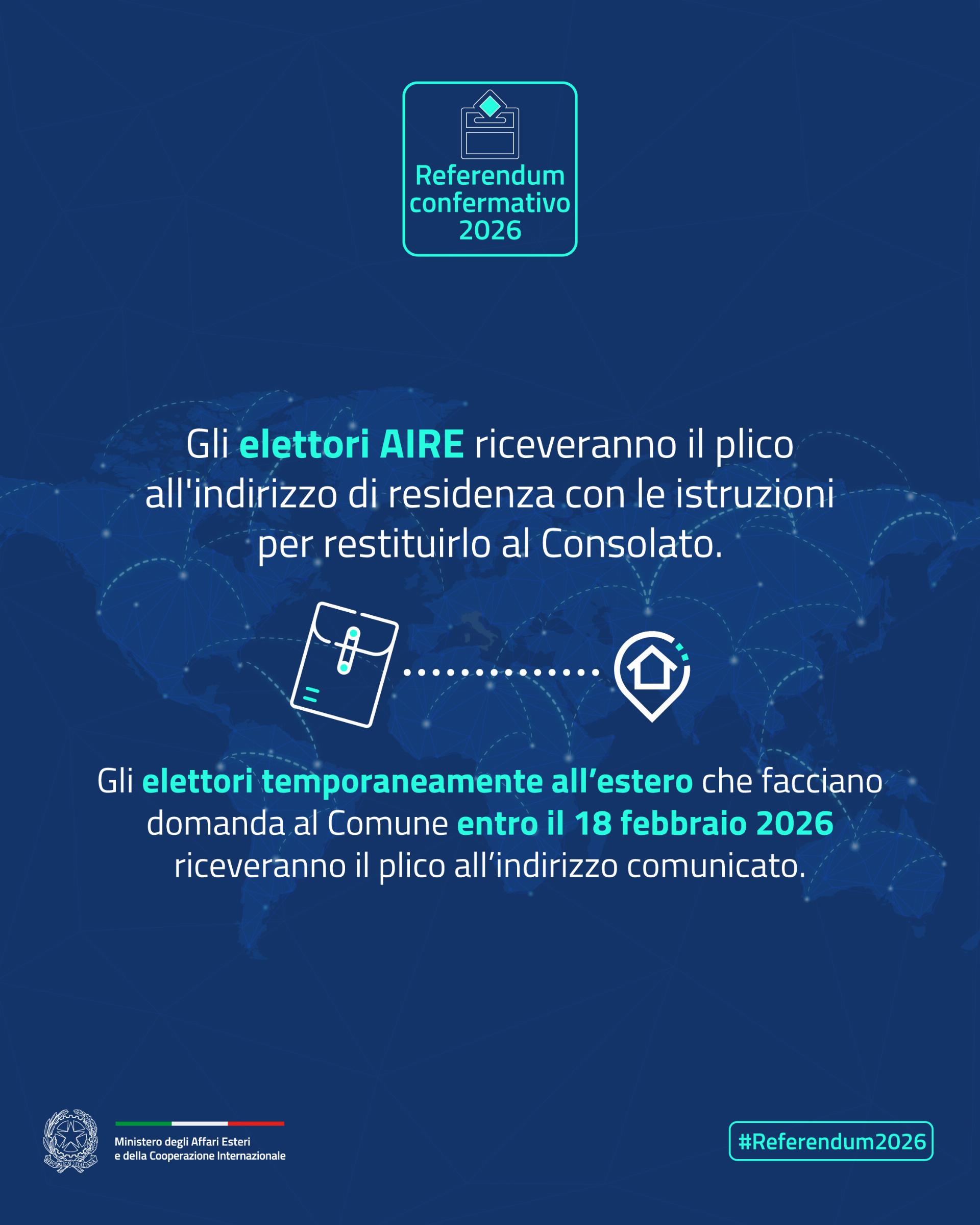 ATTENZIONE: l’elettore temporaneamente all’estero deve presentare apposita richiesta direttamente al Comune italiano di residenza ENTRO IL 18 FEBBRAIO 2026 per ricevere il plico elettorale.